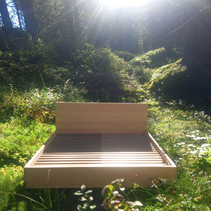 Das Herz des Bettes - der Lattenrost - wird individuell auf die Bedürfnisse von Geist - Seele - Körper abgestimmt. Geomantie und die eigene Körperwahrnehmung ermitteln die persönliche Baumart.